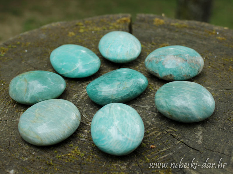 Opis: Vrlo kvalitetni ručno polirani obluci amazonita za dlan