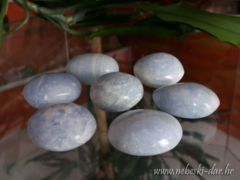 Opis: Ručno polirani oblutci plavog kalcita , nježne svijetlo plave boje izvrsne kvalitete