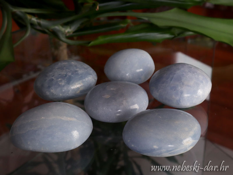 Opis: Ručno polirani oblutci plavog kalcita , nježne svijetlo plave boje izvrsne kvalitete