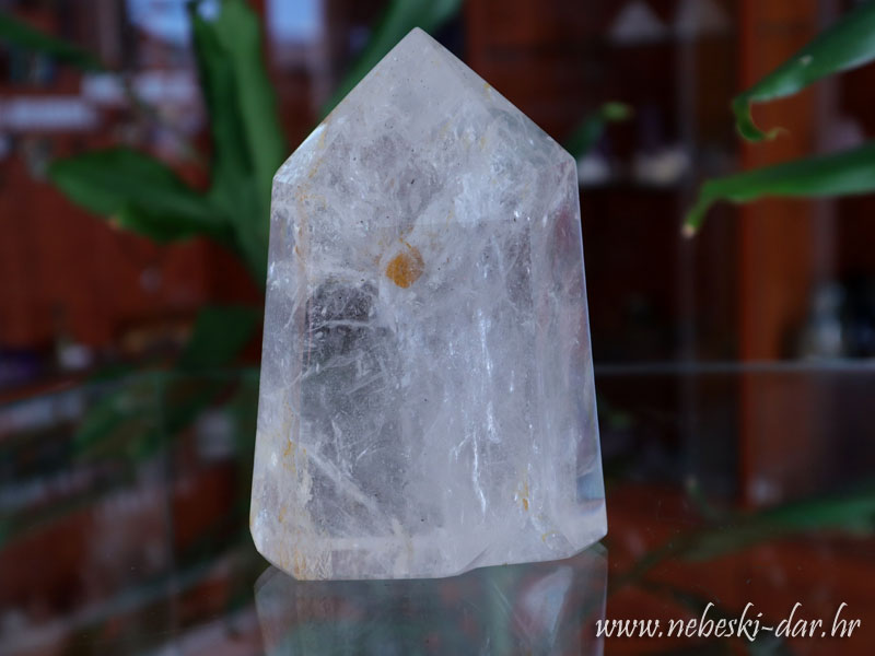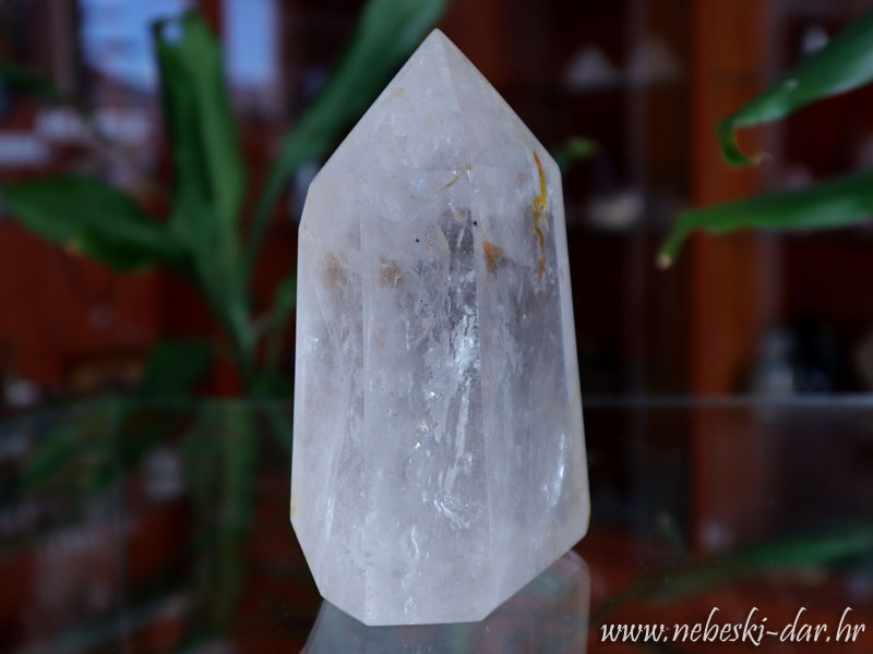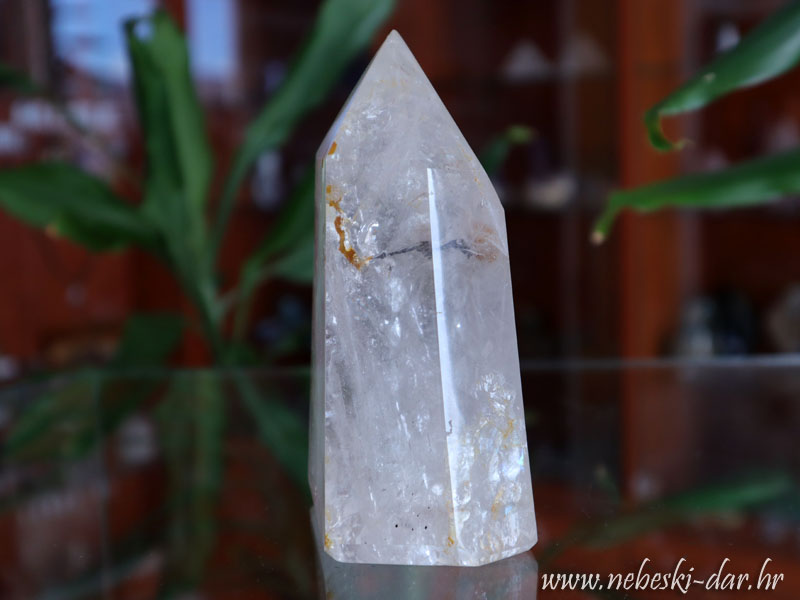 Opis: Velika prirodno formirana polirana špica gorskog kristala prekrasnih paučina s 80 % prozirnosti