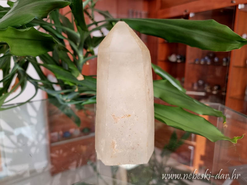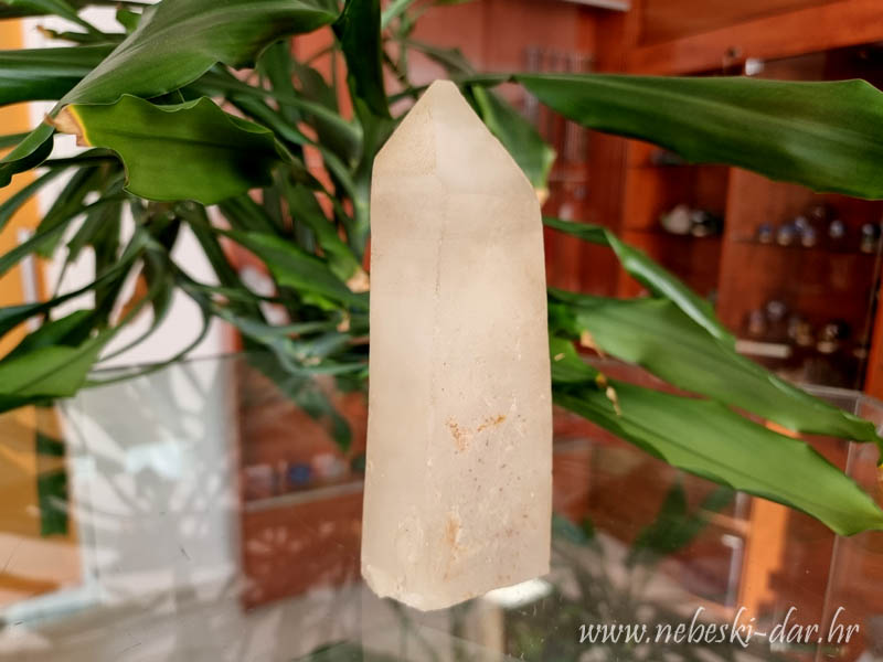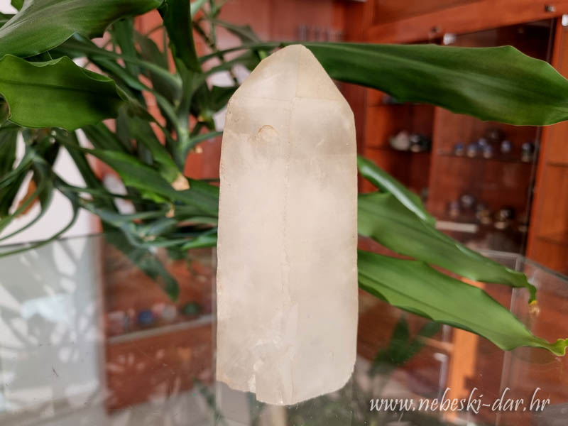 Opis: Prirodna xl neobrađena špica gorskog kristala. Prirodno formirane špice energetski su daleko jače od grumena, kristala u matrici ili umjetno brušenih u formu špice.
