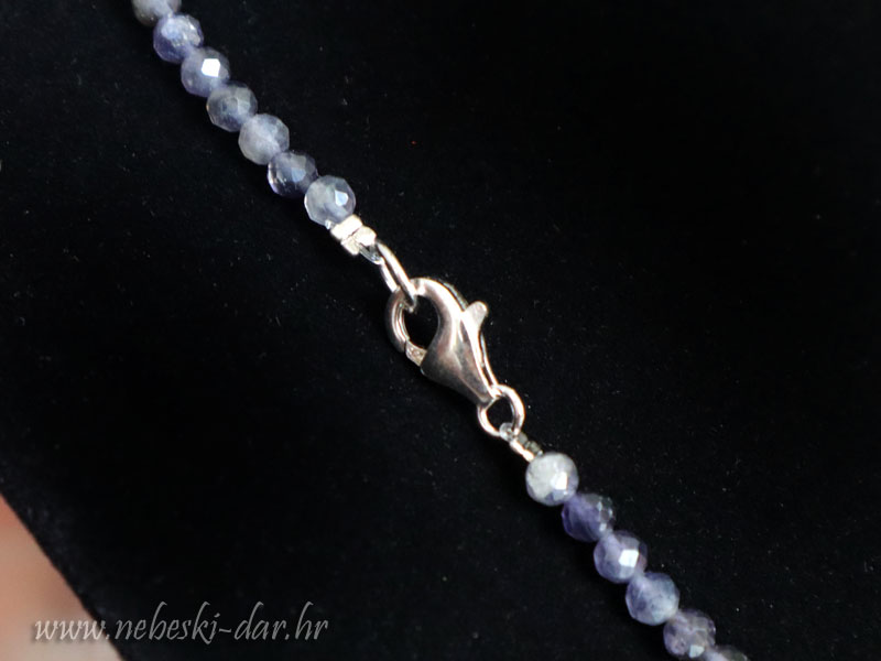 Ogrlica od facetiranih kuglica iolita izvrsne kvalitete cca. 4 mm s srebrnom kopčom veličine cca. 45 cm