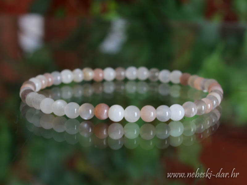 Narukvica od kuglica mjesečevog kamena izvrsne kvalitete na elastičnoj vrpci veličine cca. 16,5 cm. Veličina kamenčića cca. 3 - 4 mm