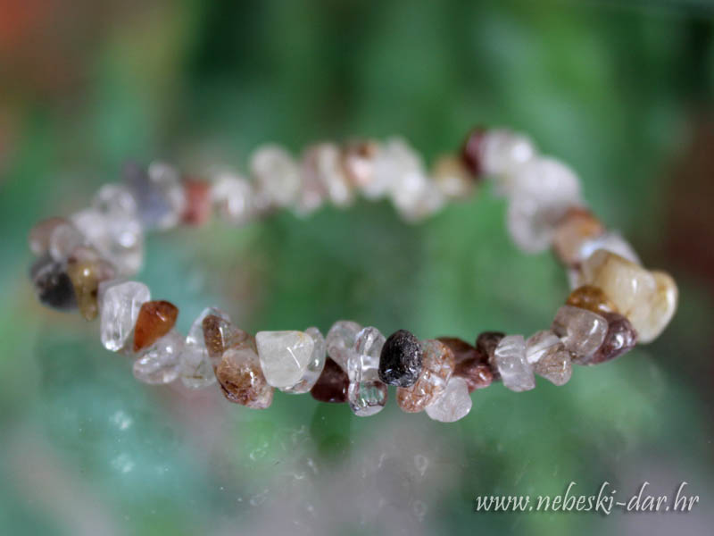 Narukvica (čips) od nepravilnih poliranih komada rutil kvarca 0,5 - 1 cm nanizanog na elastičnoj vrpci za nakit