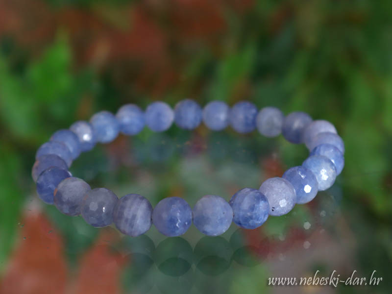 Narukvica od facetiranih kuglica safira nanizanih na elastičnoj vrpci za nakit veličine cca. 17,5 cm. Kuglice veličine cca. 8 mm