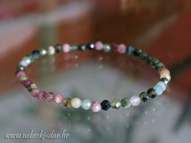 Narukvica od facetiranih kuglica turnalina veličine cca. 4 mm. nanizanog na elastičnoj gumici veličine 17 cm
