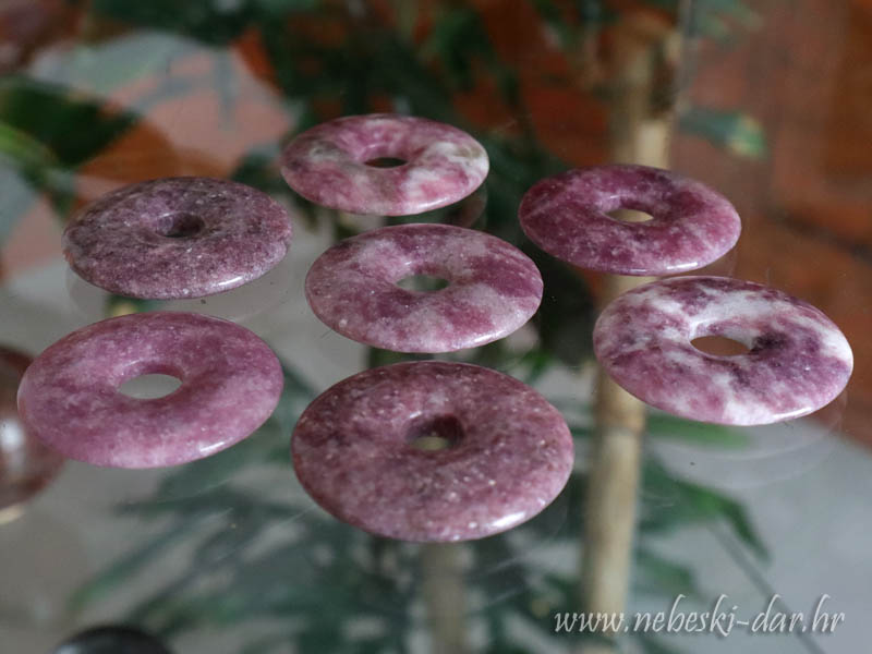 Djelovanje: Lepidolit poništava negativnost. Aktivira i otvara grlenu, srčanu, krunsku čakru i treće oko, te ujedno pročišćava blokade i donosi kozmičku svijesnost. Omogućava pristup mislima i osjećajima iz drugih života koji stvaraju blokadu u sadašnjem životu. Izuzetno je koristan za smanjivanje stresa i depresije. Smanjuje potištenost, jača imunitet i restrukturira DNK. Pomaže kod iscrpljenosti, epilepsije i Alcheimerove bolesti. Ublažava išijas i probleme sa zglobovima. Odličan je za menopauzu posebno u obliku eliksira. Fantastično čisti elektromagnetno zagađenje