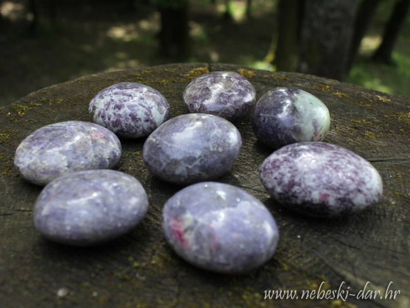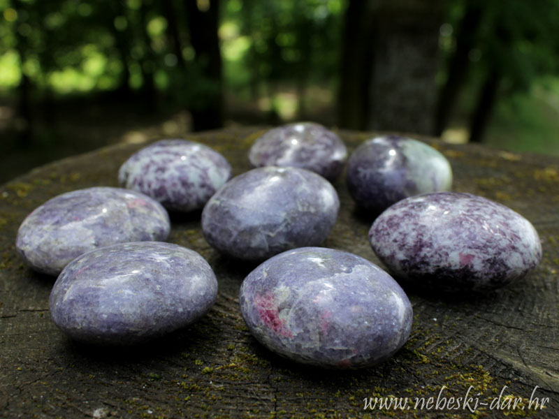 Djelovanje: Lepidolit poništava negativnost. Aktivira i otvara grlenu, srčanu, krunsku čakru i treće oko, te ujedno pročišćava blokade i donosi kozmičku svijesnost. Omogućava pristup mislima i osjećajima iz drugih života koji stvaraju blokadu u sadašnjem životu. Izuzetno je koristan za smanjivanje stresa i depresije. Smanjuje potištenost, jača imunitet i restrukturira DNK. Pomaže kod iscrpljenosti, epilepsije i Alcheimerove bolesti. Ublažava išijas i probleme sa zglobovima. Odličan je za menopauzu posebno u obliku eliksira. Fantastično čisti elektromagnetno zagađenje