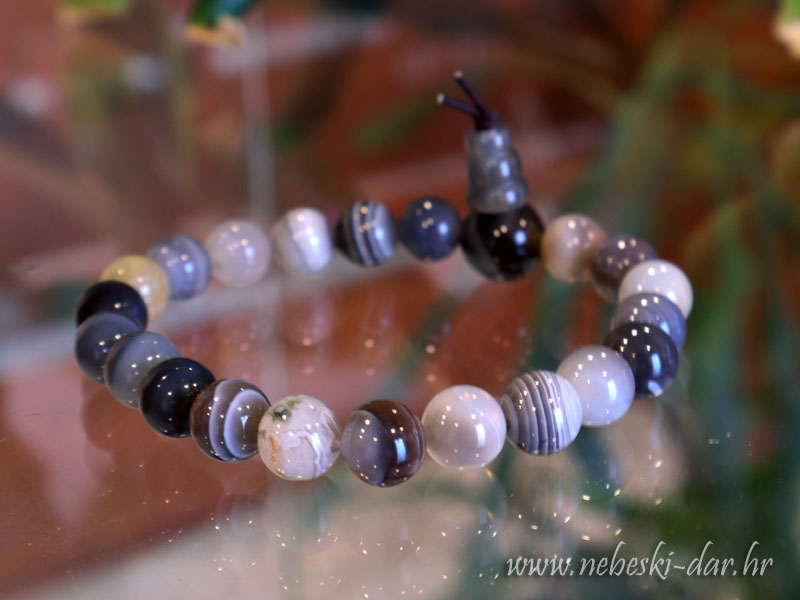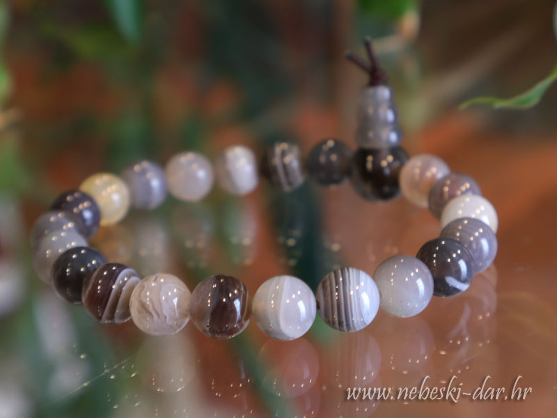 Djelovanje: Botswana ahat još se naziva i "kamen promjene" zbog toga što nam pomaže sve promijeniti u pozitivnom smjeru i čini to da su prijelazi i promjene blage, a ne teške i bolne. On je vrlo utješan, ohrabrujući.