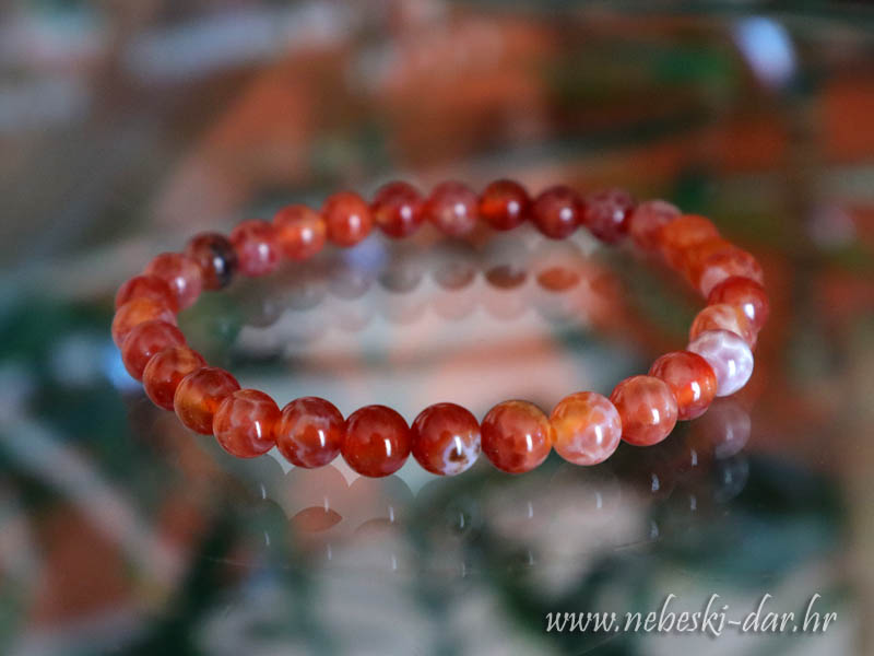Narukvica vatrenog ahata nanizanog na elastičnoj vrpci veličine cca.17 cm. Veličina kuglica 6mm