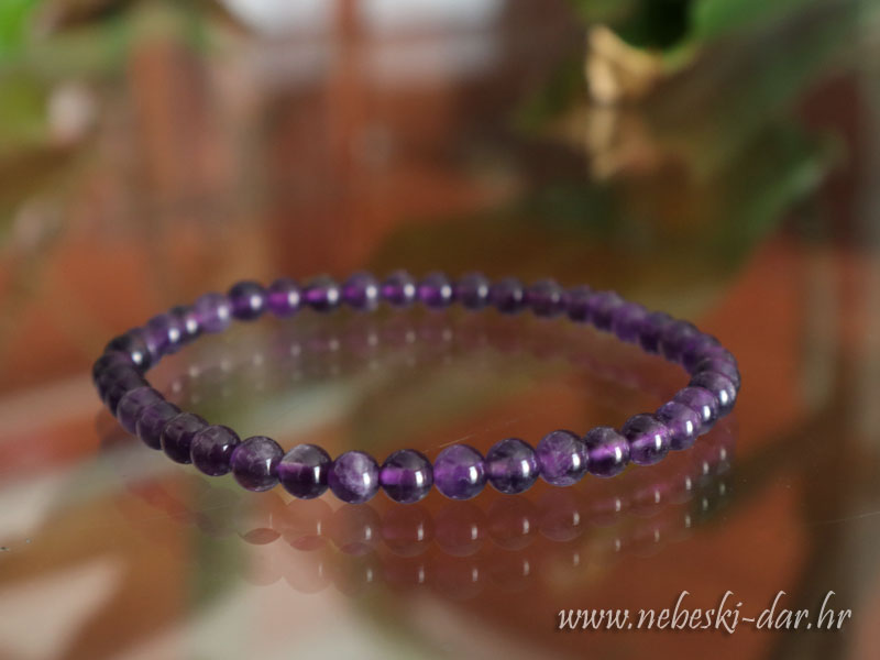 Narukvica od ametista izvrsne kvalitete na elastičnoj vrpci veličine cca. 17,5 cm. Veličina kamenčića cca. 3 - 4 mm