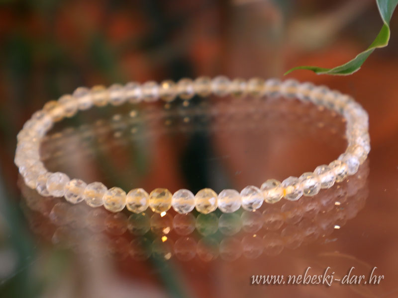 Narukvica od facetiranog citrina izvrsne kvalitete na elastičnoj vrpci veličine cca. 16,5 cm. Veličina kamenčića cca. 4 mm
