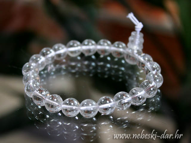 Energetska narukvica (Buddha) od kuglica gorskog kristala cca. 8 mm nanizanih na elastičnoj gumici za nakit veličine cca. 17,5 cm