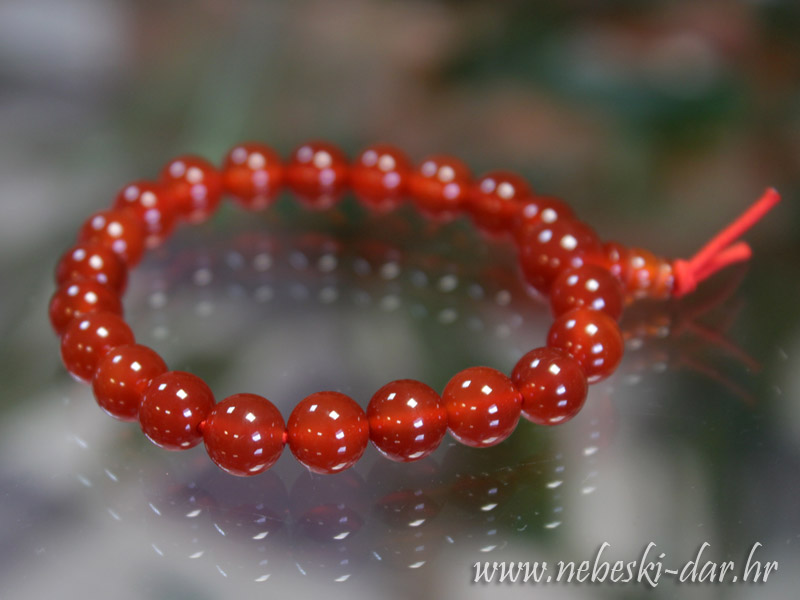 Energetska narukvica (Buddha) od kuglica karneola cca. 8 mm nanizanih na elastičnoj gumici za nakit veličine cca. 17,5 cm
