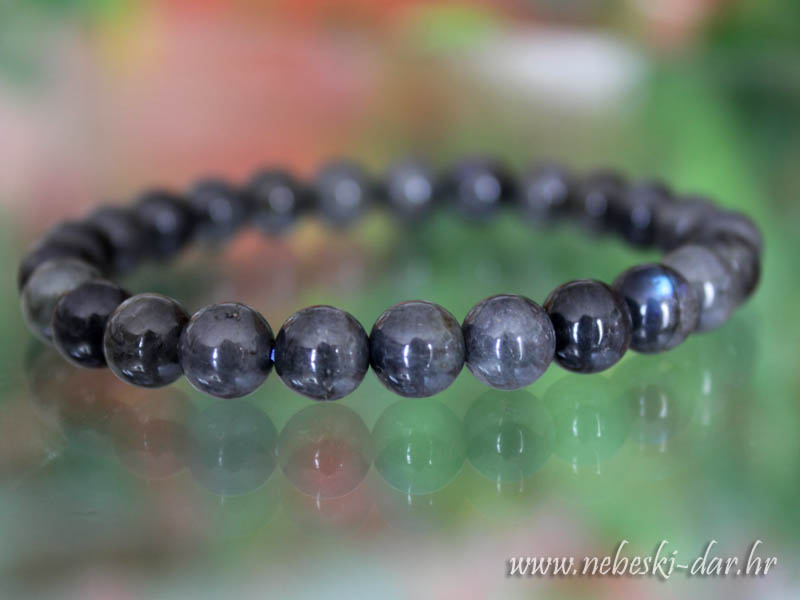 Narukvica od labradorita, kuglice su promjera cca. 8 mm. nanizane na elastičnoj silikonskoj vrpci za nakit veličine 17 cm