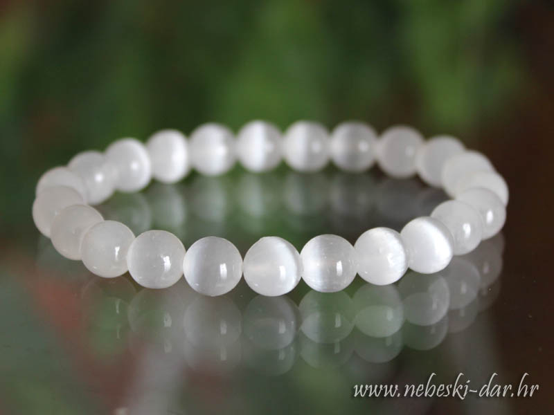 Narukvica od kuglica selenita cca. 8 mm nanizanih na elastičnoj gumici za nakit veličine cca.17 cm