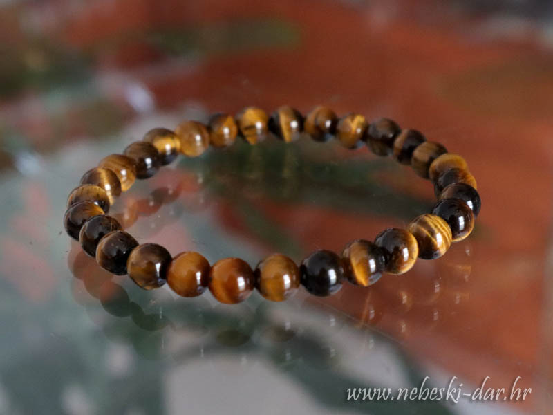 Energetska narukvica od kuglica tigrovog oka cca. 8mm nanizanih na elastičnoj gumici za nakit veličine cca. 17,5 cm