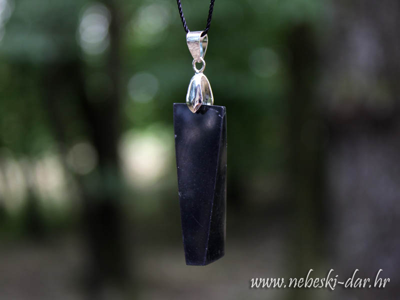 Opis: Privjesak od šungita s pozlaćenom ili niklanom kopčom